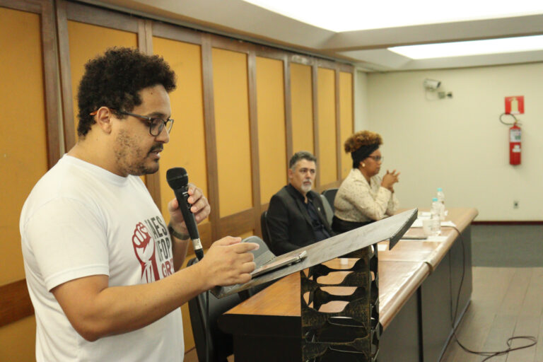 Presidente do ASSUFOP discursa sobre a greve em reunião do Conselho Universitário