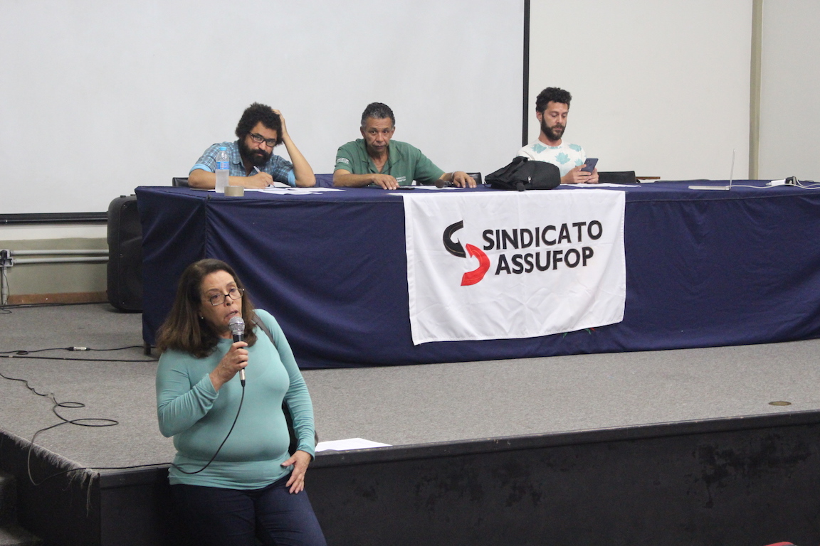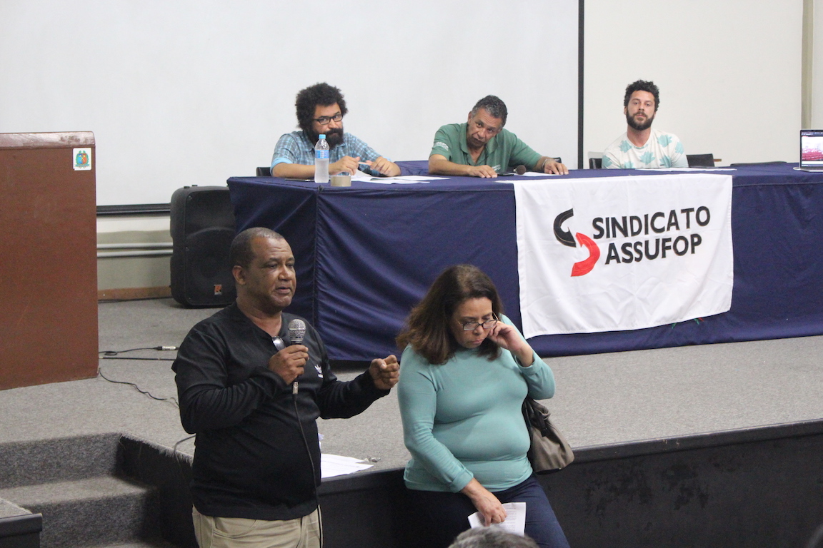 A grande maioria dos 134 técnico-administrativos da UFOP que compareceram à assembleia desta terça-feira (12), no auditório do DEGEO, aprovou o estado de Greve da categoria, bem como a adesão à Greve Geral de 24h em defesa do serviço público para o dia 18/03. Vale sublinhar que o estado de Greve é um alerta ao governo federal, resistente em negociar a pauta de reivindicações dos trabalhadores. O estado de greve coloca o conjunto da categoria em alerta e mobilizada com a possibilidade iminente de greve. Para tanto, é preciso que haja outra assembleia para adesão de fato dos trabalhadores à Greve.