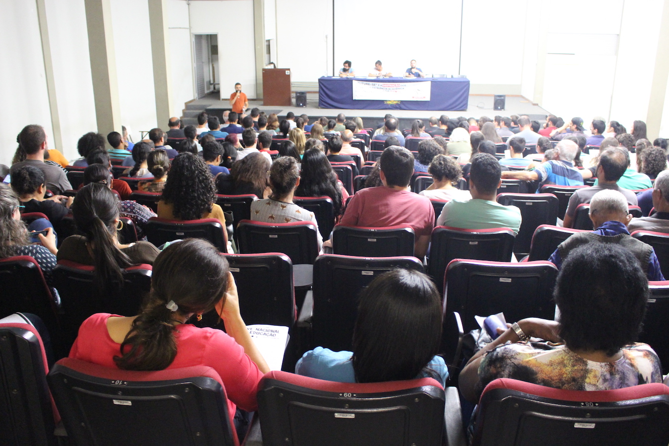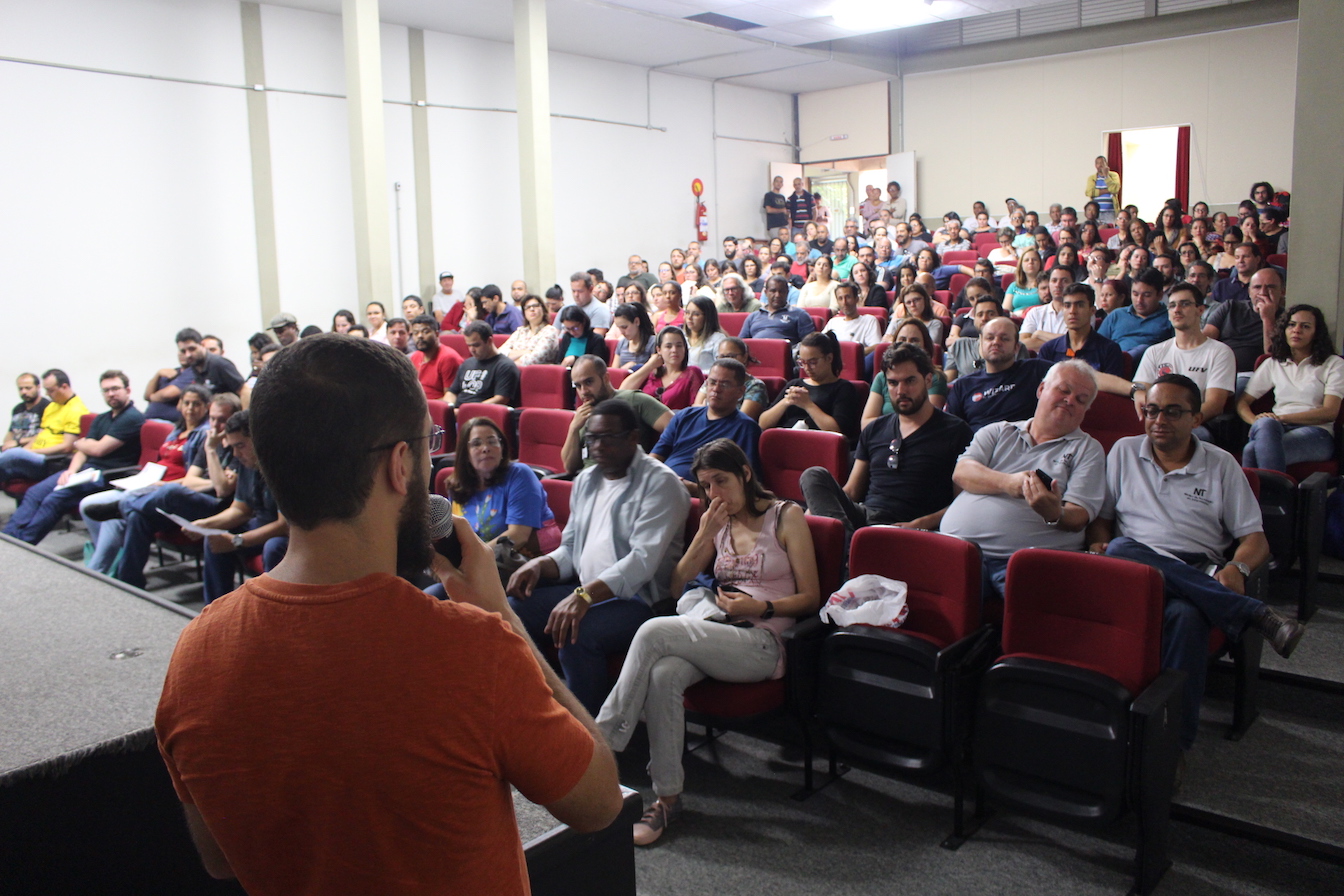 A grande maioria dos 204 técnico-administrativos da UFOP que compareceram à assembleia desta terça-feira (1), no auditório do DEGEO, aprovou a paralisação de 48 horas para esta quarta (2) e quinta-feira (3).  A Greve Nacional da Educação de 48 horas foi convocada pela FASUBRA, pelo SINASEFE, pelo ANDES e pela UNE contra os ataques do governo Bolsonaro ao ensino público; contra os cortes no orçamento das IFEs e pelo fim do programa do MEC de privatização das universidades e institutos federais, intitulado “Future-se”.