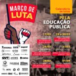 24 entidades da Educação Pública se uniram para lutar contra os ataques do governo Bolsonaro contra o Setor. E estas lutas, que começam a se organizar amanhã (17/03), têm previsão de consolidação no dia 31/03, com uma grande Plenária Nacional em Defesa da Educação Pública. A Plenária Nacional de 31/03 será realizada virtualmente e transmitida pelas
