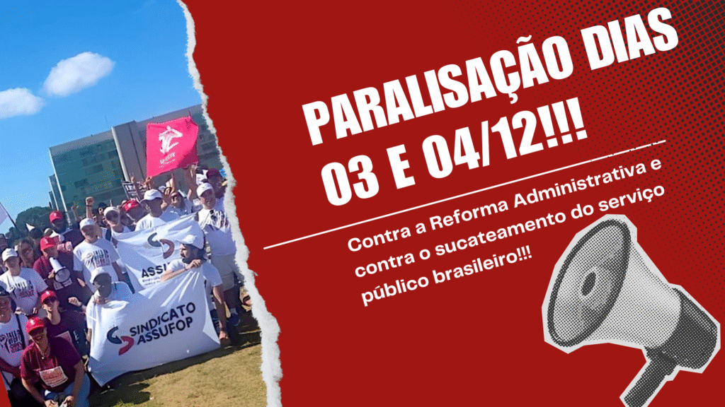 Hoje (02/12), a base do Sindicato ASSUFOP aprovou paralisação para os dias 03 e 04 de dezembro. A paralisação acompanha o calendário de lutas da Fasubra e tem por objetivo pressionar o governo contra a aprovação da Reforma Administrativa.
