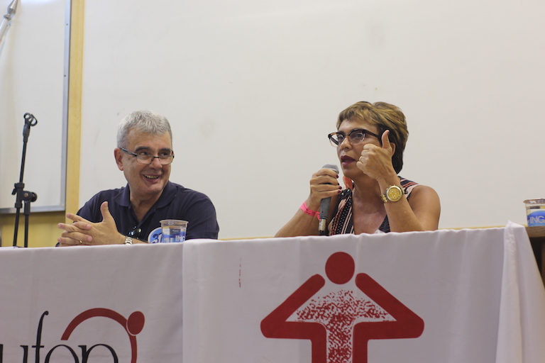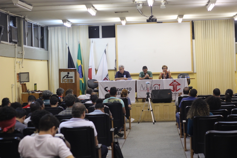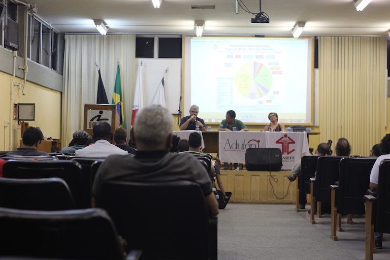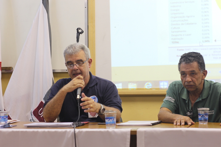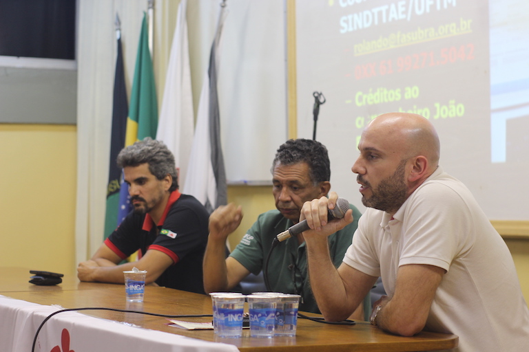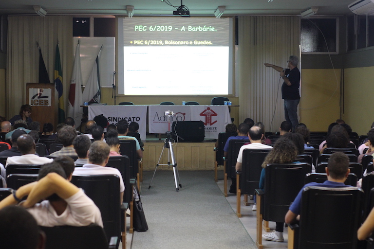 A mesa foi composta pelo servidor e ex-coordenador da FASUBRA, Rolando Malvásio, e também pela deputada estadual, Marília Campos. Os presentes puderam tirar dúvidas sobre os efeitos da nociva reforma da previdência de Paulo Guedes, cuja intenção, em linhas gerais, é entregar o direito à previdência do povo aos bancos. Estes irão lucrar com suas vendas de planos de previdência privada.