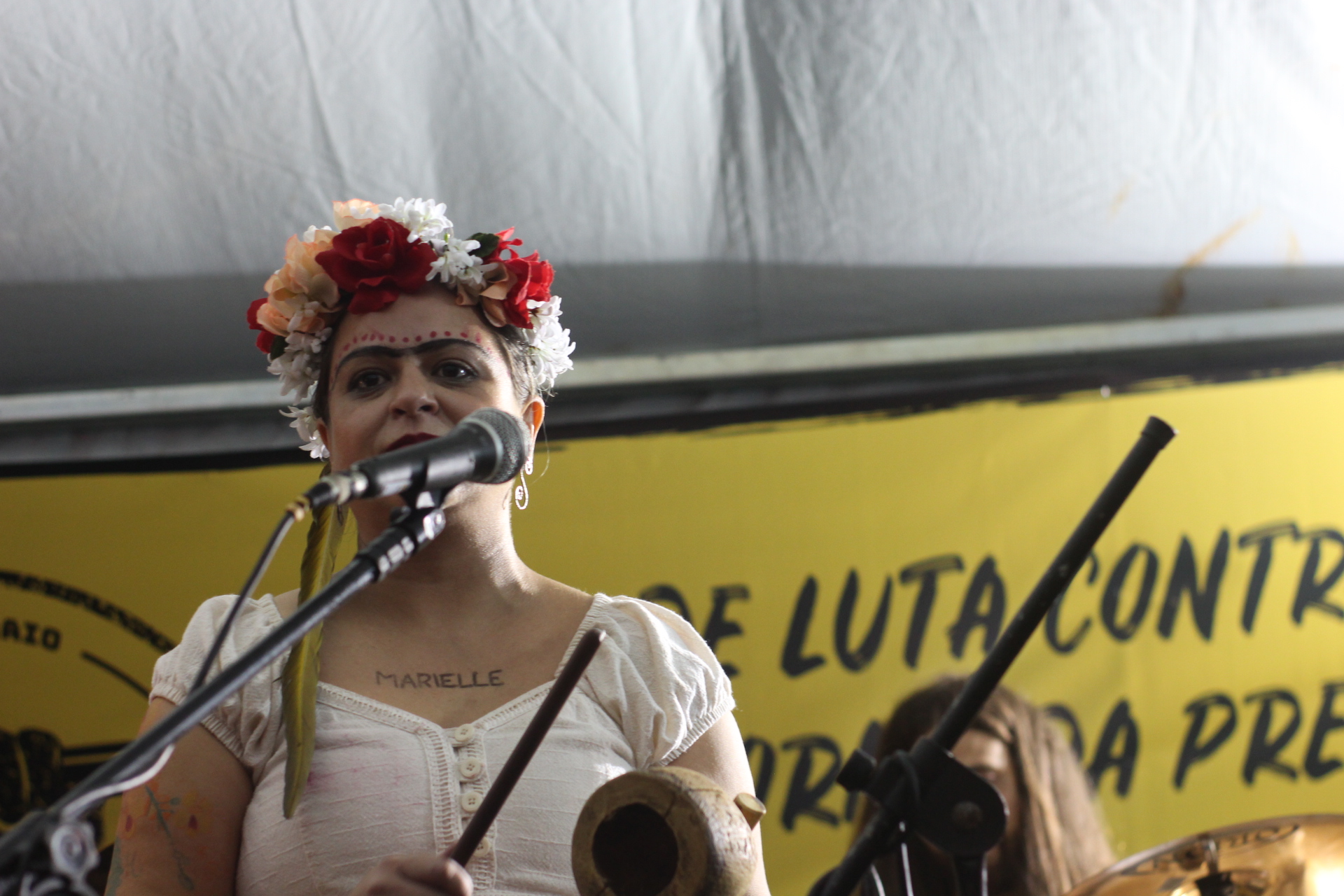 Em sua fala inicial, a coordenadora do SINASEFE IFMG, Laura Rocha,  destacou as injustiças sociais vividas pelas trabalhadores e trabalhadores brasileiros; o Estado de repressão que tomou conta do país; o desemprego; a barbárie sofrida por Marille (cujo mandante do crime segue solto), por Igor Mendes – assassinado em Ouro Preto numa ação policial -; por  Evaldo dos Santos – massacrado pelo Exército no Rio de Janeiro com 80 tiros. Laura também sublinhou outras as ações que ameaçam a democracia, a vida das mulheres, do povo negro e dos trabalhadores em geral. Assista: