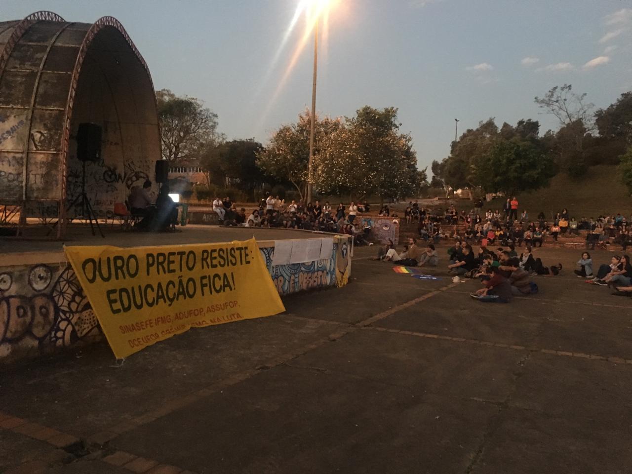 Na parte da tarde, por volta de 17h, a Concha Acústica da UFOP foi palco de uma discussão sobre o “Future-se” que contou com a participação de Sérgio Neves, pelo ASSUFOP, Cristina Maia pela ADUFOP; Gabriel Levenhagen, pelo SINASEFE IFMG; bem como os membros da comissão de análise do Futures-e na UFOP, JoséBenedito Donadon ( Diretor do ICSA) ; Eleonardo Pereira (Pró-Reitor de Planejamento da UFOP) e Paula Lorraine (Secretária Geral UEE MG). Durante a discussão, os membros da comissão sublinharam que indicaram ao Conselho Universitário a rejeição absoluta do programa Future-se por considerá-lo inconstitucional; confuso e ir de encontro aos objetivos sociais de uma universidade pública.