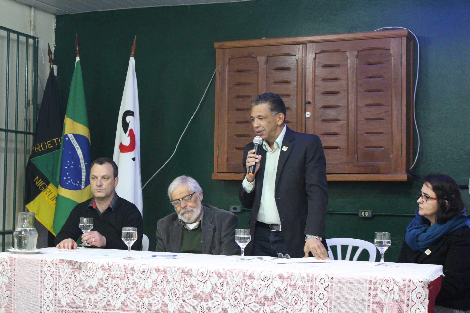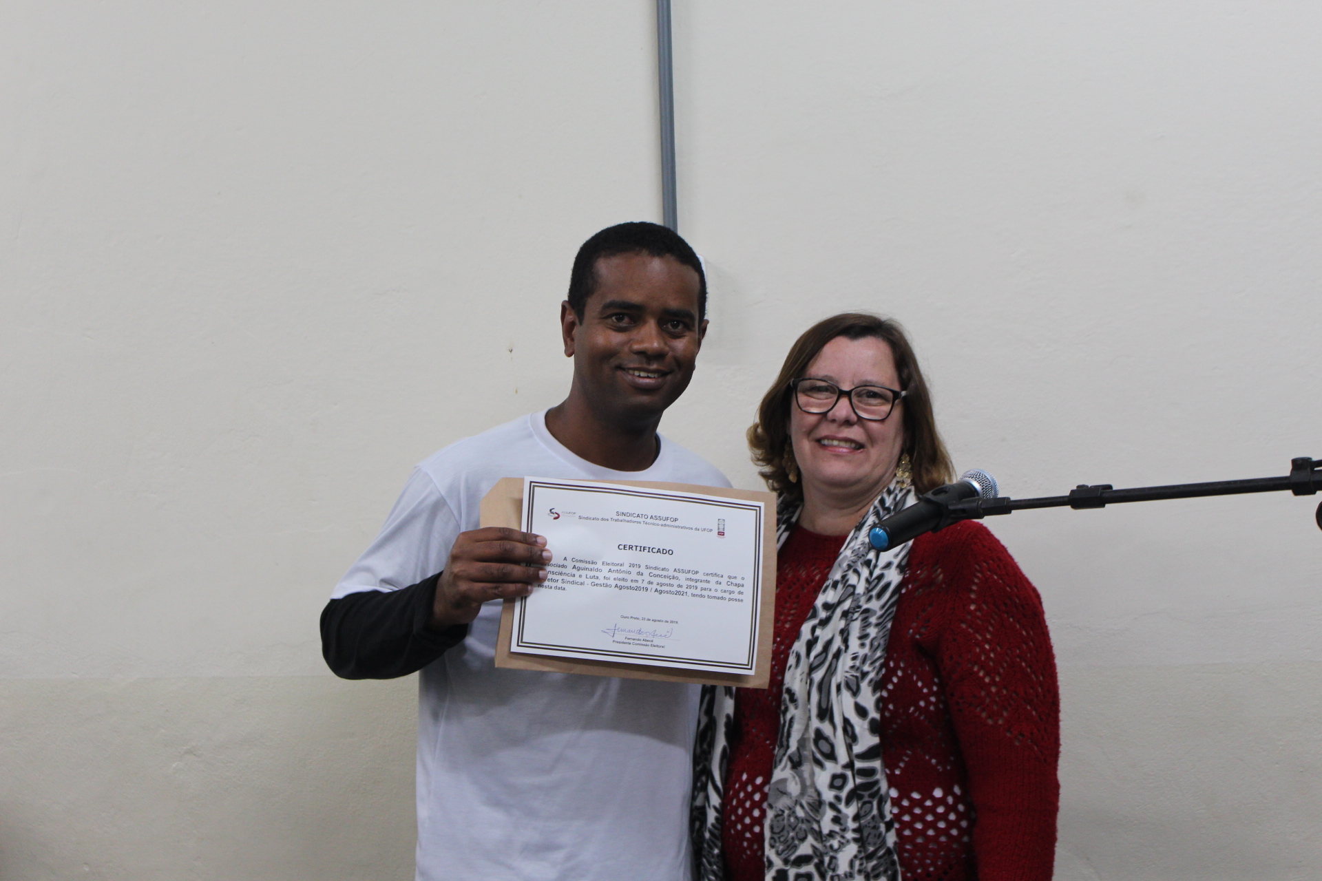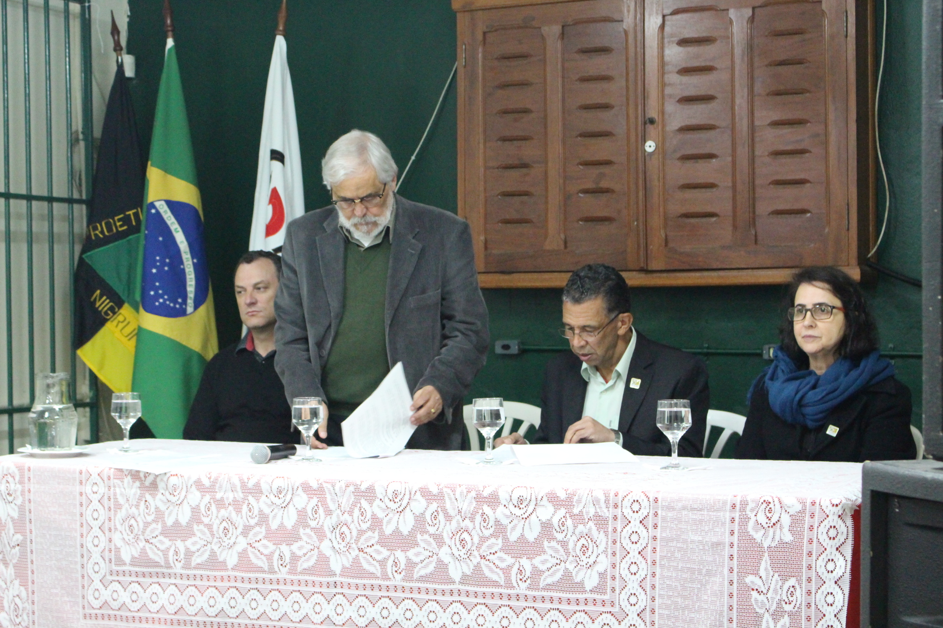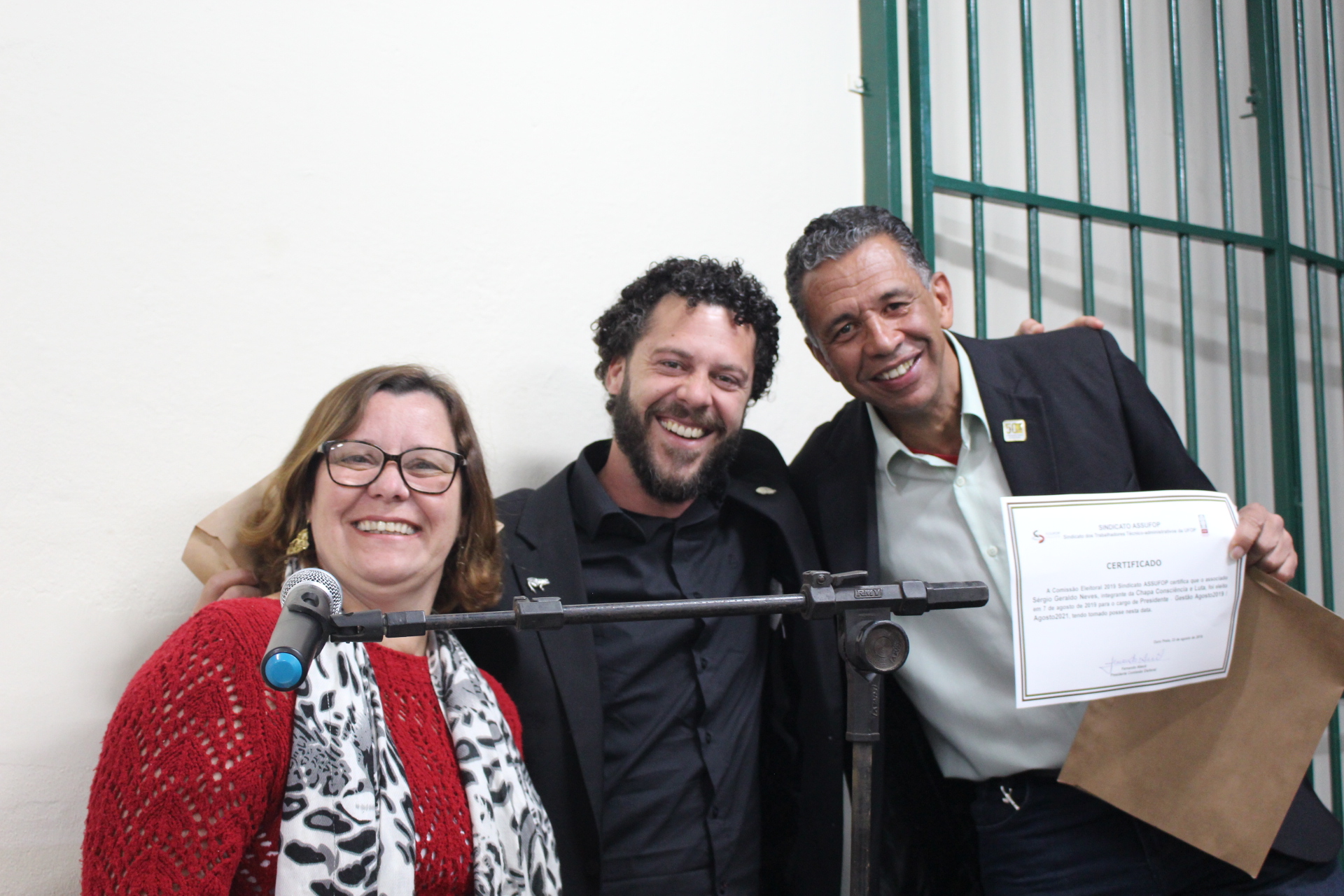Sérgio Geraldo Neves, reempossado como presidente do ASSUFOP, fez uso da palavra agradecendo todos os TAEs da UFOP que compõem o Sindicato e fortalecem a entidade, em especial as 248 pessoas que votaram na chapa Consciência e Luta, pela confiança e participação. Sérgio agradeceu também a presença da reitora Cláudia, do prefeito Júlio Pimenta e destacou os trabalhos imprescindíveis realizados pela Comissão Eleitoral na figura de seu presidente, Fernando Abecê.