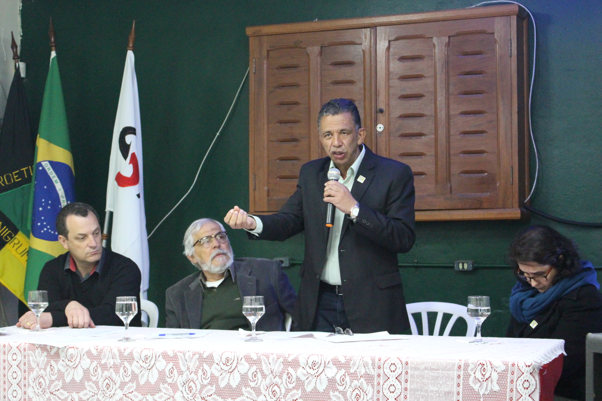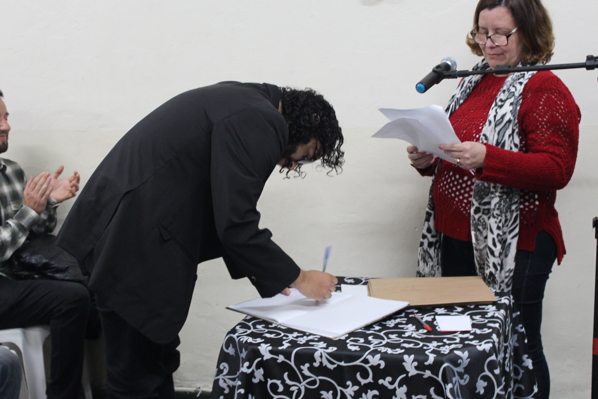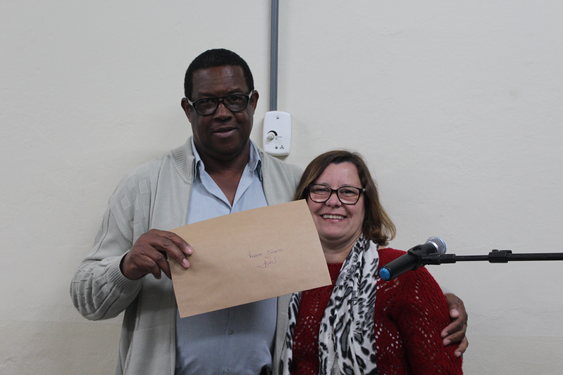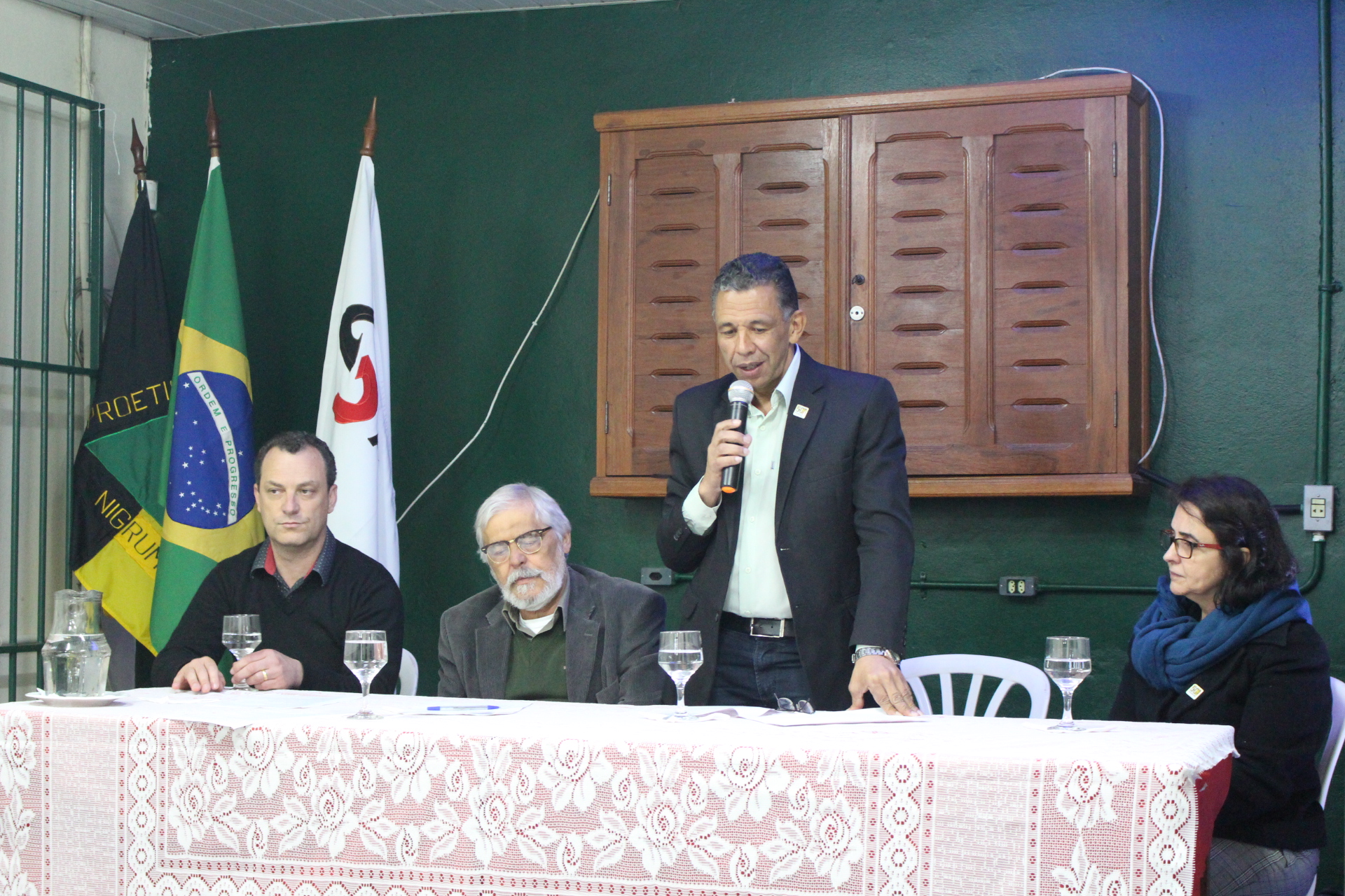 Sérgio Geraldo Neves, reempossado como presidente do ASSUFOP, fez uso da palavra agradecendo todos os TAEs da UFOP que compõem o Sindicato e fortalecem a entidade, em especial as 248 pessoas que votaram na chapa Consciência e Luta, pela confiança e participação. Sérgio agradeceu também a presença da reitora Cláudia, do prefeito Júlio Pimenta e destacou os trabalhos imprescindíveis realizados pela Comissão Eleitoral na figura de seu presidente, Fernando Abecê.