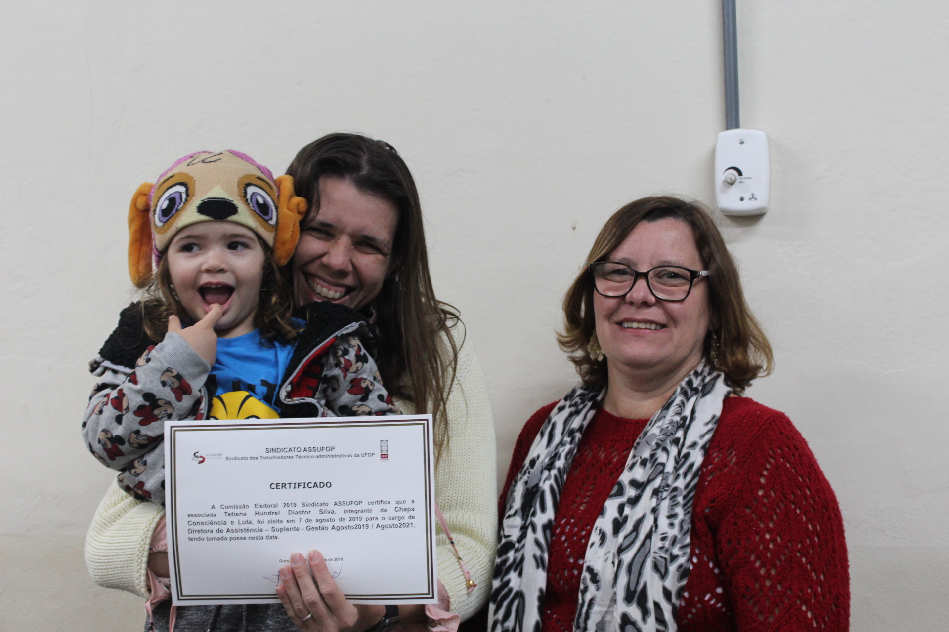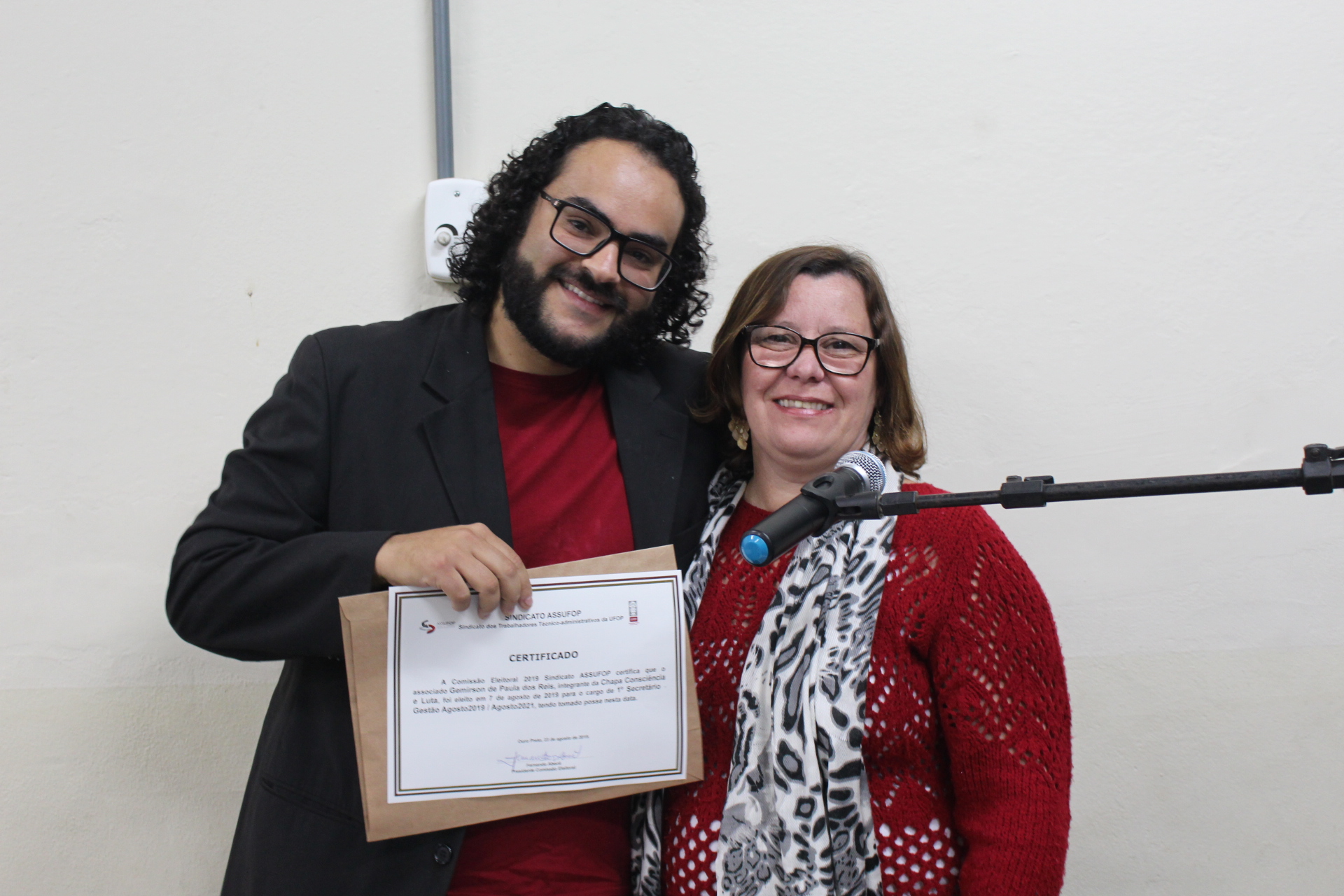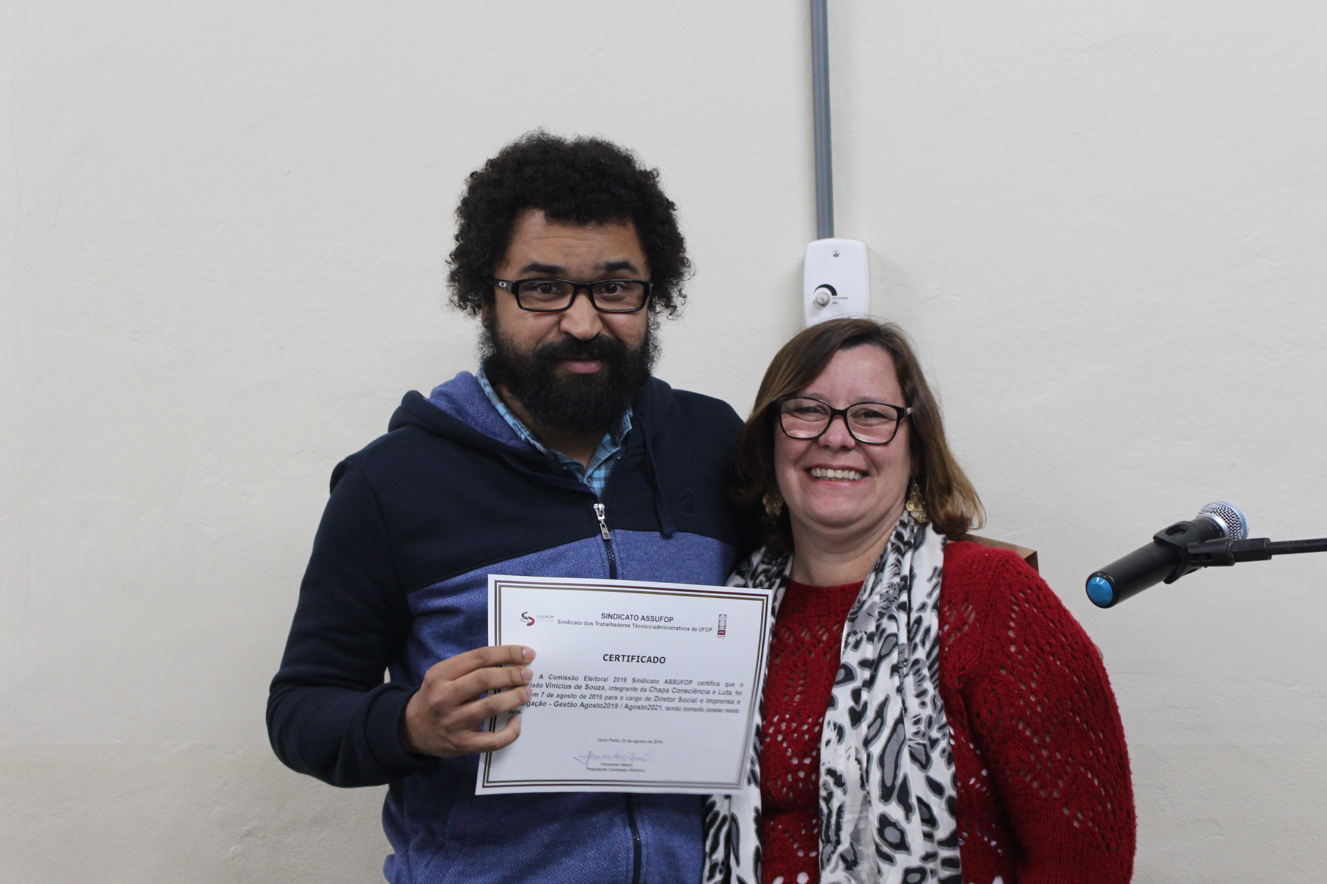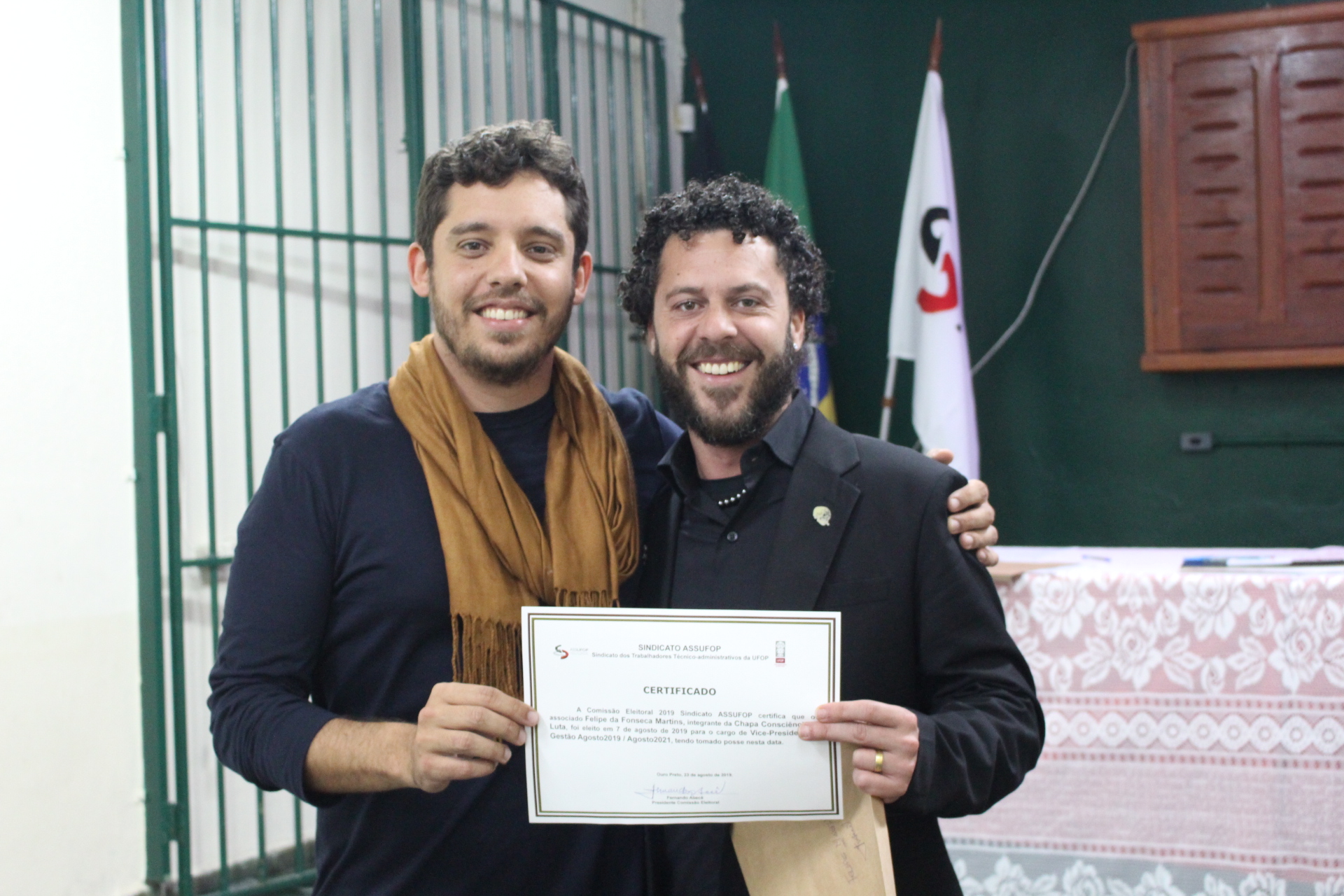 Cada diretor do Sindicato ASSUFOP assinou o termo de posse e recebeu o certificado elaborado pela Comissão Eleitoral. Os diretores Lourival Nunes;Irisa Seabra; Marco Antônio e o conselheiro José Henrique Rodrigues não puderam comparecer à posse e, portanto, foram representados via procuração por César Diab; Germírson dos Reis e Lúcia Honorato, respectivamente. A nova diretoria obedece, dessa forma, a seguinte disposição dos cargos:
